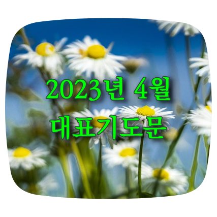 2023년 4월 대표 기도문을 모아 놓았습니다. 각 주별, 주제별로 분류 했으니 더 많은 4월 대표 기도문을 알고 싶으신 분들은 아래의 글을 참조하시면 됩니다. 모든 글이 완성된 것은 아닙니다. 완성된 기도분은 제목에 링크를 넣어 개별 기도문으로 이동하도록 했습니다. 참조하셔서 은혜로운 기도 하시기 바랍니다.