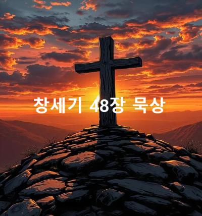 창세기 48장은 야곱이 병상에서 요셉의 두 아들, 므낫세와 에브라임을 자신의 아들로 입양하고 축복하는 장면을 담고 있습니다. 야곱은 에브라임에게 장자의 축복을 주며, 하나님의 계획과 약속이 인간의 관습과 상식을 넘어 이루어진다는 것을 보여줍니다. 그는 하나님의 신실하심을 증언하며 자신의 삶을 마무리하고, 후손들에게 믿음의 유산을 남깁니다. 이 장은 하나님의 섭리와 약속의 성취를 강조합니다.
